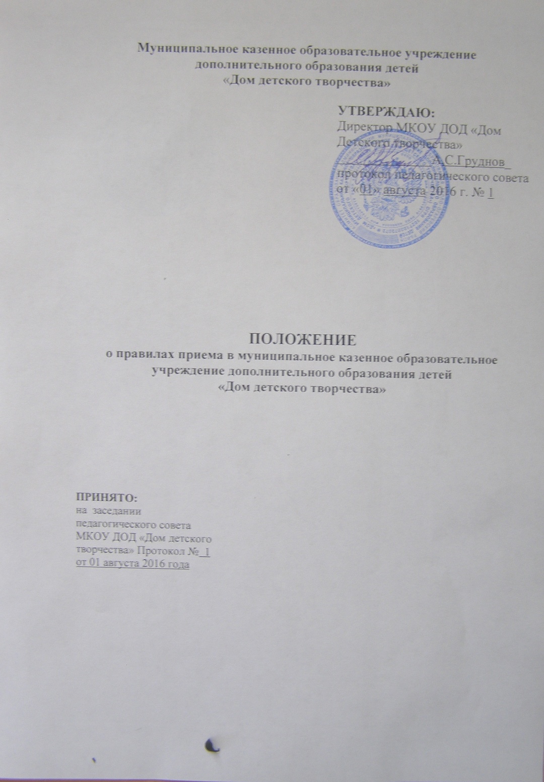 Положение о правилах приема обучающихся